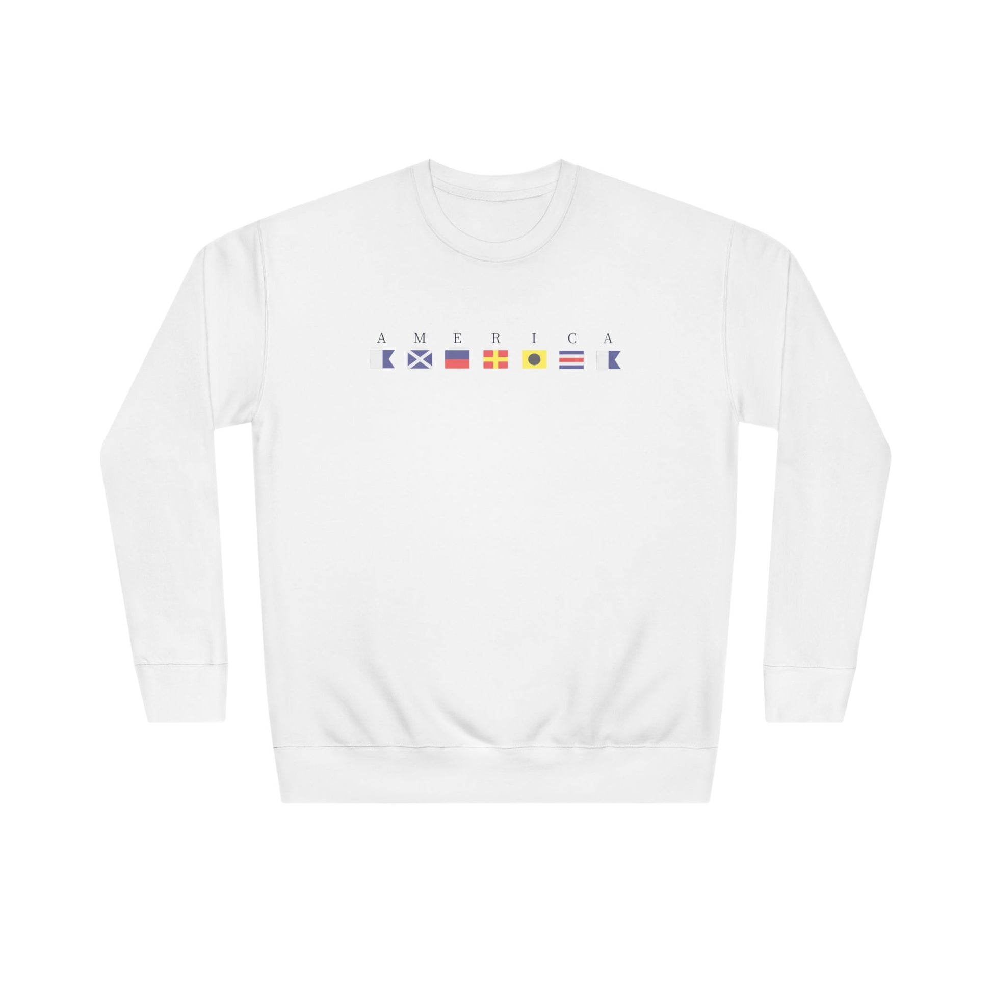 This America Sweatshirt featuring Signal Flag Nautical design gives a nautical and patriotic vibe. Perfect for those who love the sea and sailing, it is great for casual wear or as a cozy layer during chilly days. Ideal for Memorial Day, Fourth of July, or any maritime-themed celebrations.
