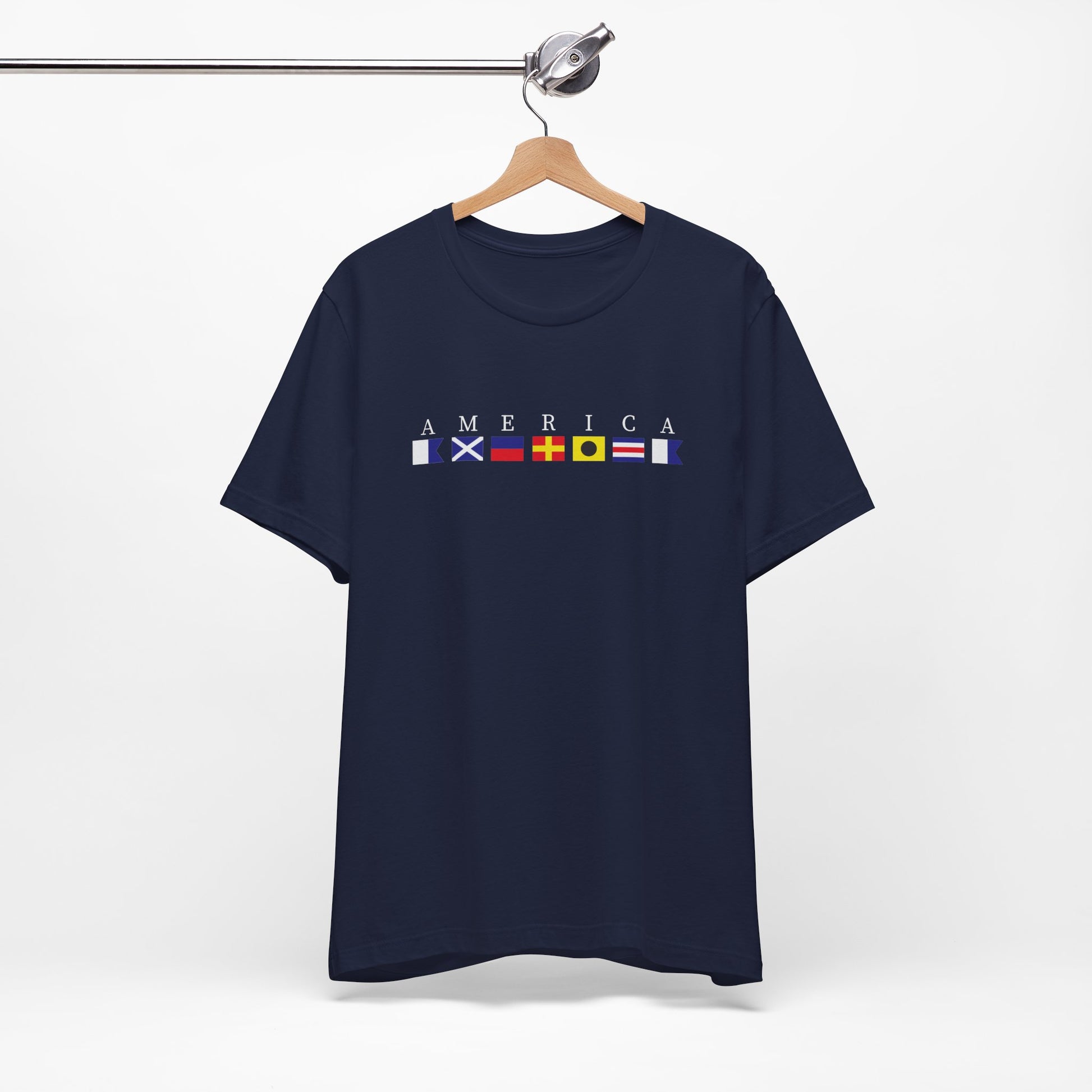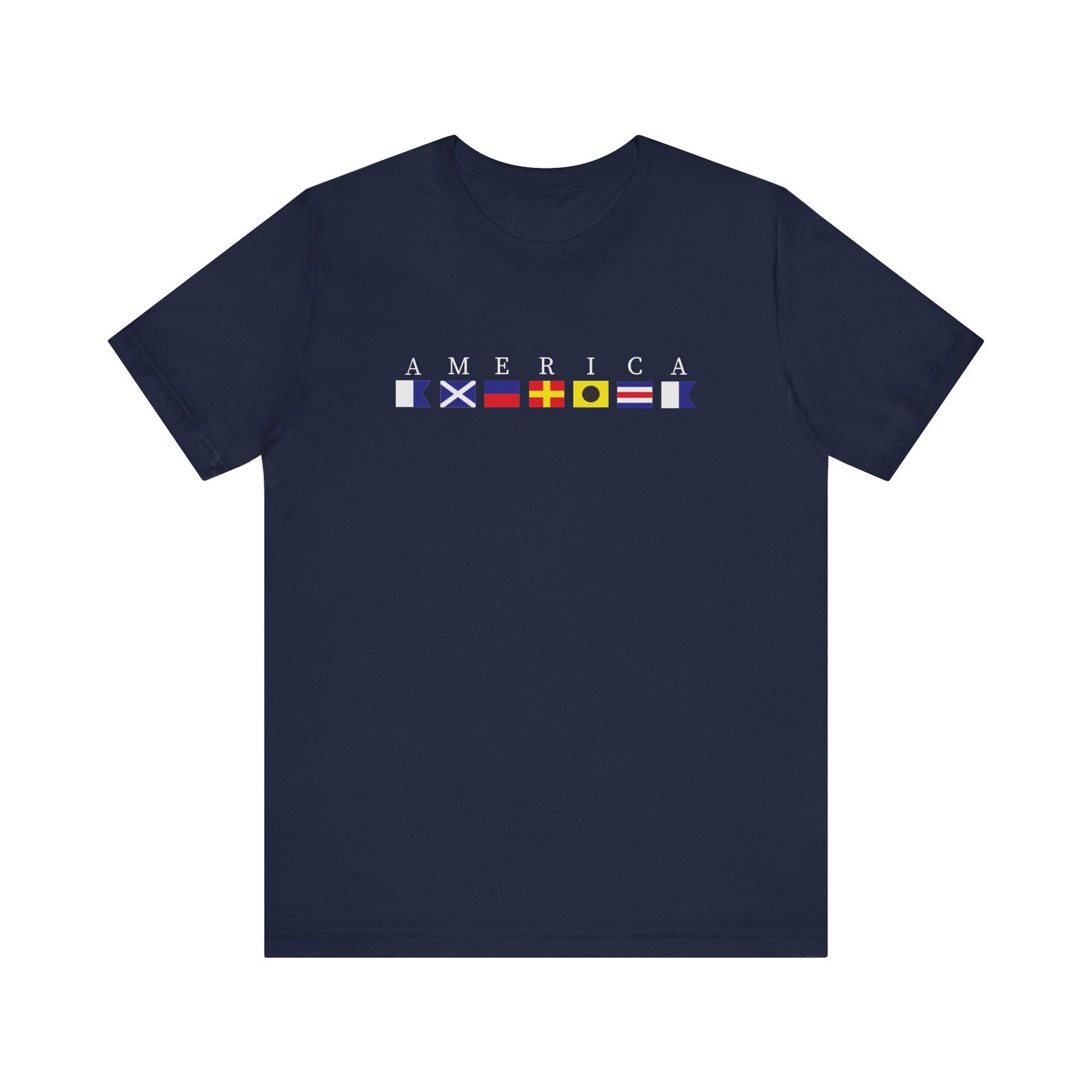 Patriotic America Signal Flag Nautical Tee - White Letters